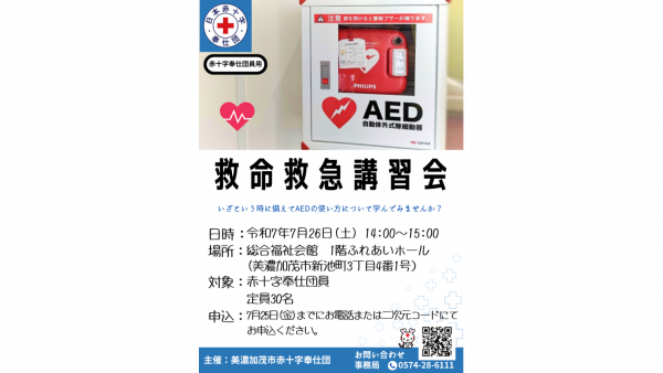 美濃加茂市赤十字奉仕団主催「救命救急講習会」を開催します!