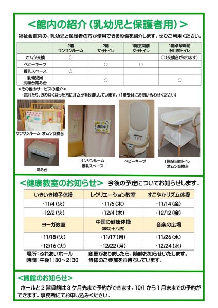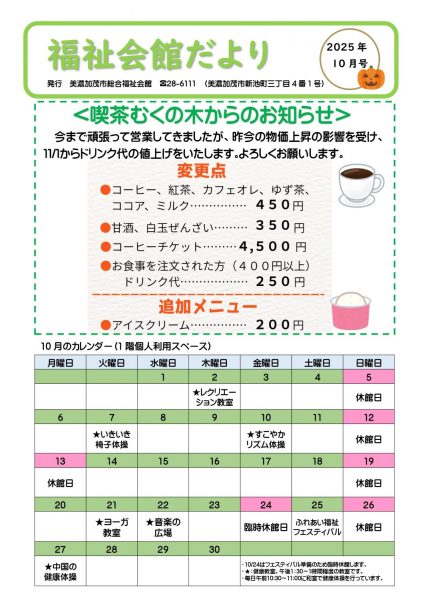 会館の行事を掲載した「福祉会館だより10月号」を作成しました。