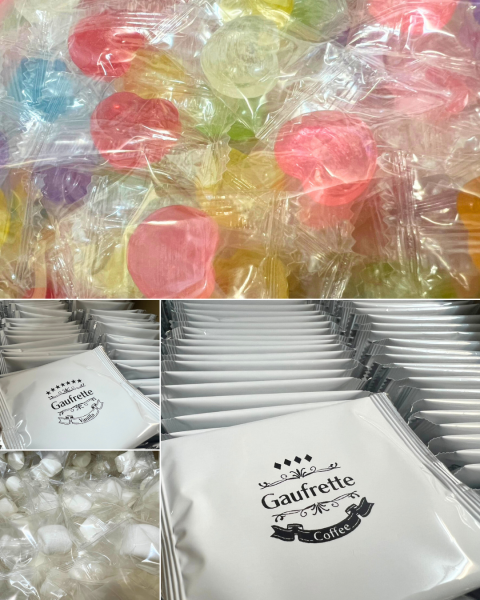 10月7日(火)、(株)コムズ様よりキャンディやマシュマロ、ゴーフレットのお菓子のご寄付をいただきました。