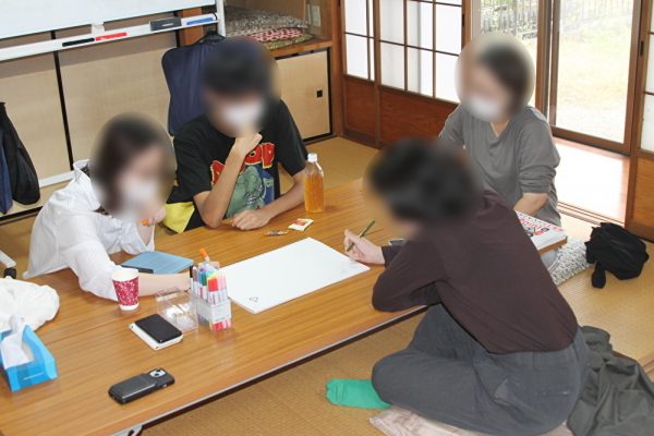■10/1、10/20には、「蜂屋の家」を活用し、居場所活動の一環としてイラストを描くことが得意な方が集まる「イラストカフェ」を開催しました。初参加となる方もいる中で、最近描いたイラストの共有や、イラストの描き方、専門学校のことなどさまざまな話題で盛り上がりました。