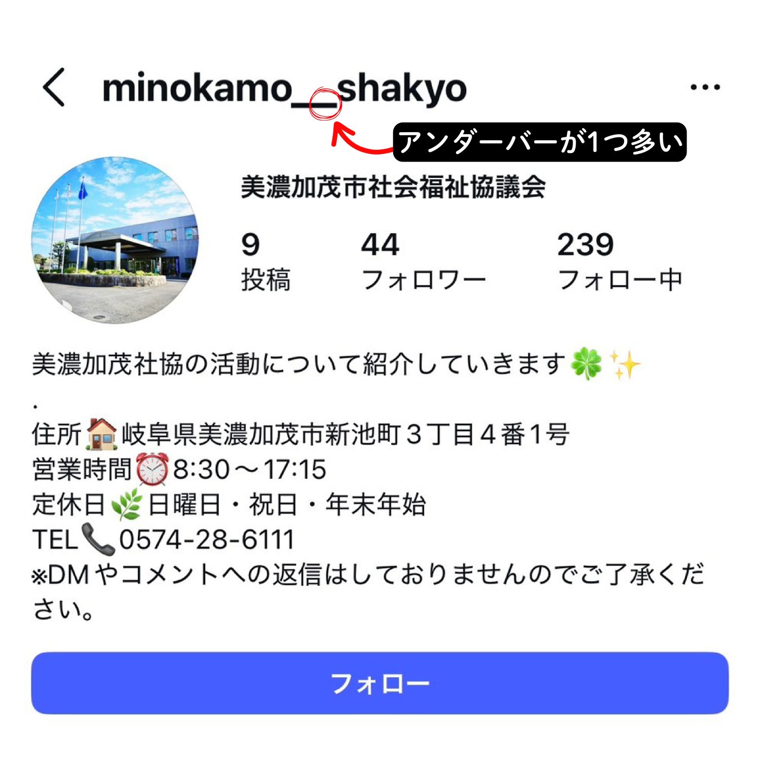 美濃加茂市社会福祉協議会 公式Instagramなりすましアカウントが確認されました