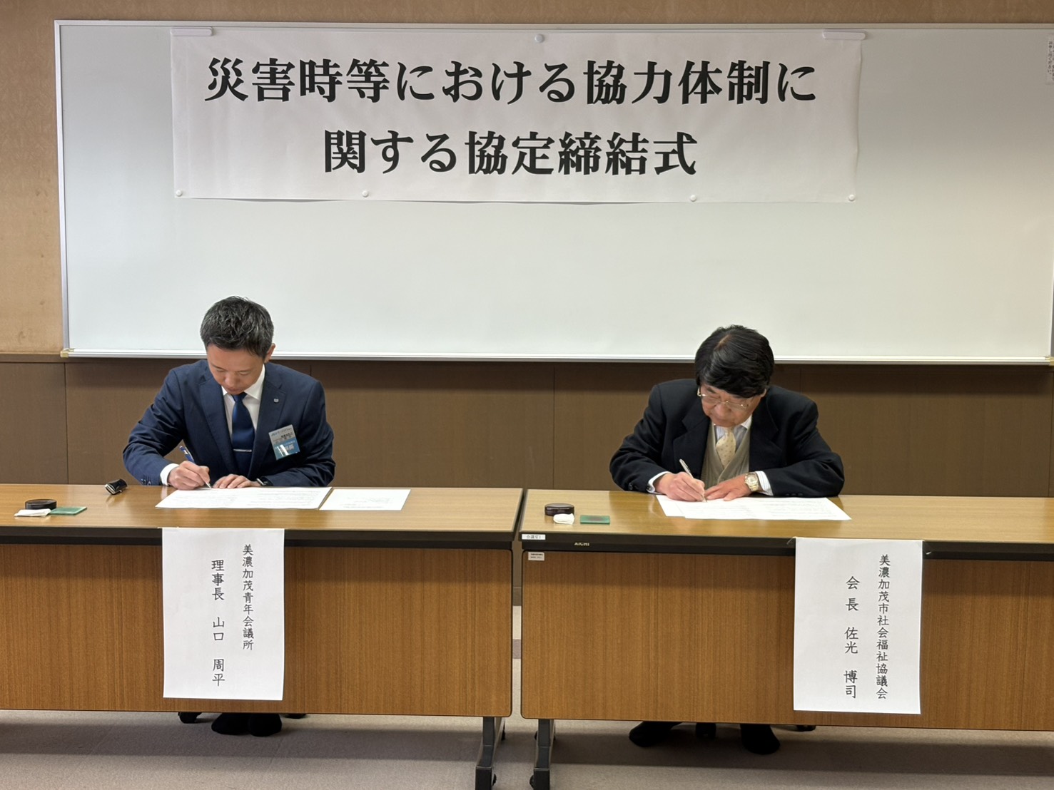 美濃加茂青年会議所と「災害時等における協力体制に関する協定」を締結しました。