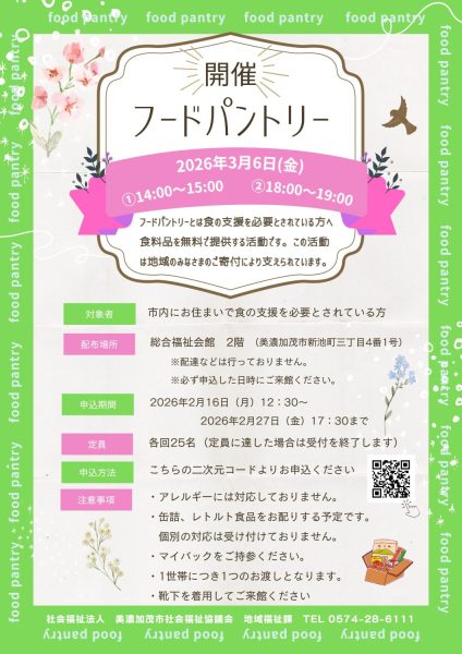 食の支援を必要とされている方へ、寄付などでいただいた食料品等を無料で提供する活動です。