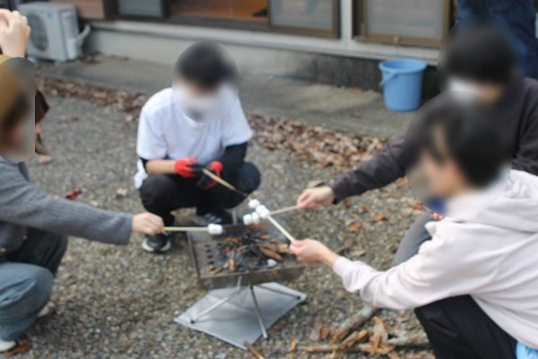■2/10、2/24には、「蜂屋の家」を活用し、居場所づくりの一環として「コミュニティカフェ」を開催しました。ボードゲームやテレビゲームを参加者数人で楽しんだり、自由に会話して交流している姿が見られました。2/24には、寄付でいただいたマシュマロを活用した焼きマシュマロ会を実施しました。