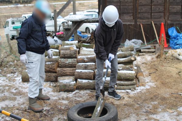 ■2/1には、山之上まちづくり協議会主催の薪割り大会に参加しました。薪割りの最中、まちづくり協議会の方から、薪の割り方についてレクチャーがあり、今回が初参加だった方も薪を割ることができていました。