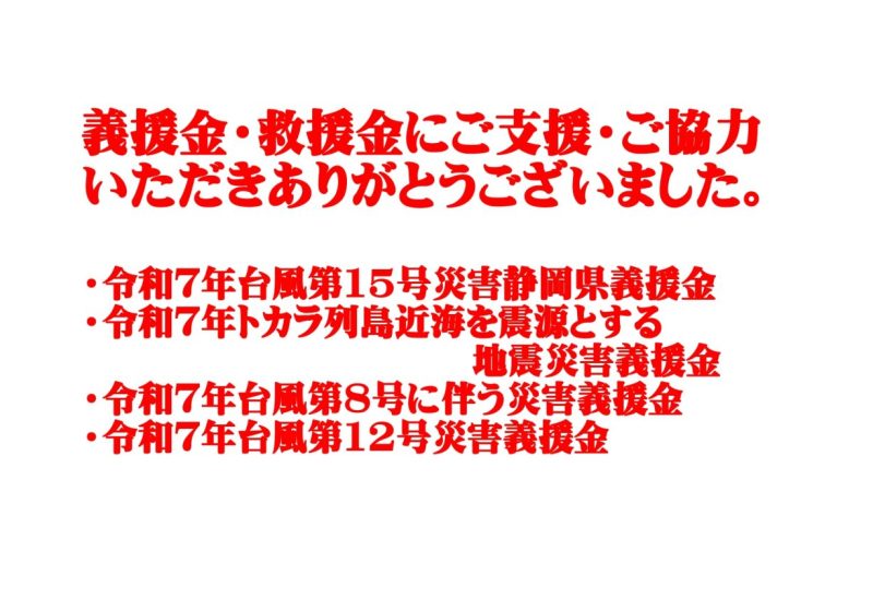 義援金・救援金に温かいご支援・ご協力ありがとうございました。