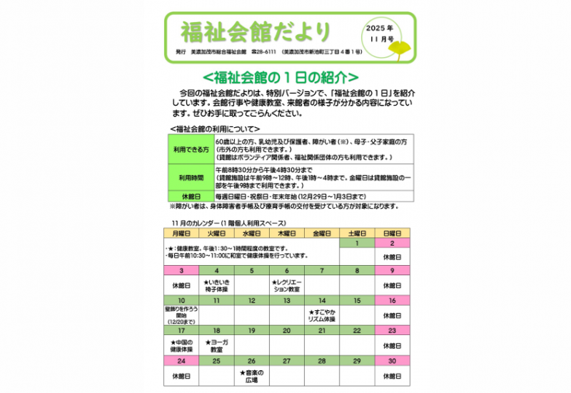 福祉会館だより11月号を発行します